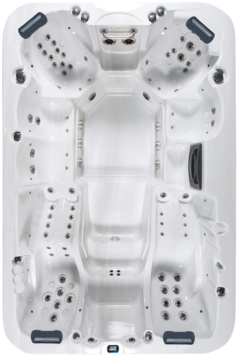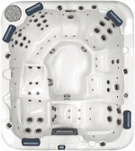 A one of a kind hybrid spa pool offering a greater depth of water, extra length and two swim jets suitable for light exercise and kids activities. Plenty of room to splash and play, without compromising on luxury. Featuring two full body recliners, entry steps and a variety of seating options makes this spa pool a true entertainer.